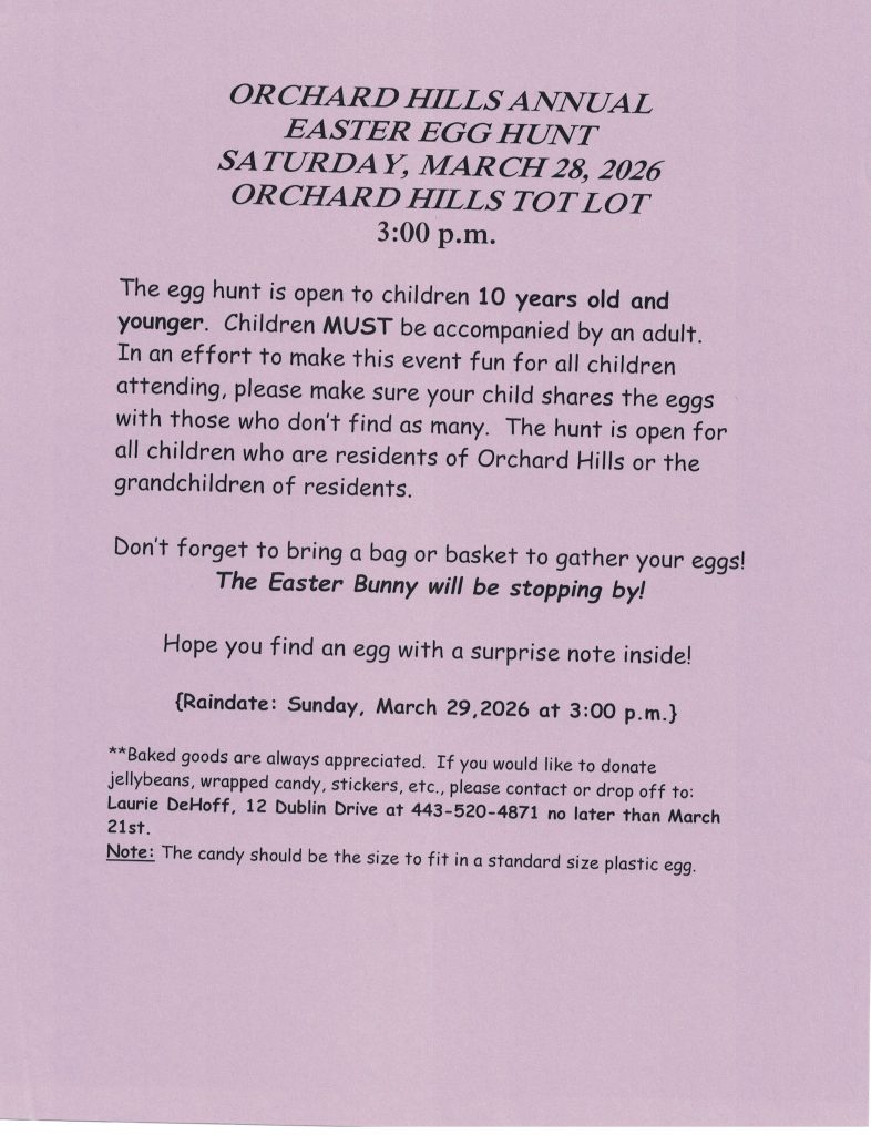 Uncategorized Orchard Hills Annual Easter Egg Hunt March 25, 2026March 25, 2026 Director1 Related Posts Uncategorized Orchard Hills Community Association General Meeting March 18, 2026 Director1 Uncategorized OHCA Family Bingo Night February 26, 2026 Director1